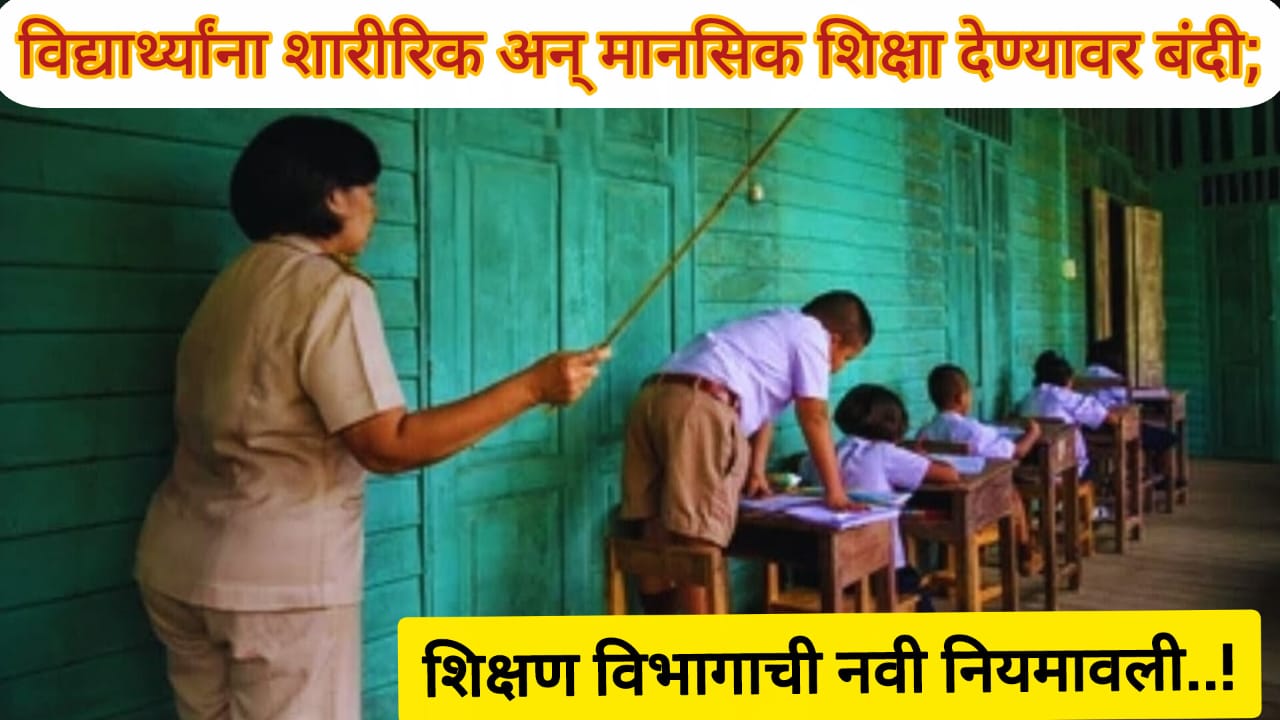विद्यार्थ्यांच्या पाठीवर उमटलेले छडीचे वळ आणि त्यांच्या मनात बसलेली शिक्षेची भीती ही महाराष्ट्रातील अनेक शाळांमधली जुनी कहाणी आहे. पण आता यावर कायमची बंदी येणार आहे. शिक्षण विभागानं विद्यार्थ्यांच्या शारीरिक आणि मानसिक शिक्षेवर कठोर निर्बंध लावणारी नवी नियमावली जारी केली आहे. मुलांना आता शाळेत कोणत्याही प्रकारची मारहाण किंवा मानसिक त्रास हा दिला जाणार नाही. हे नेमकं…