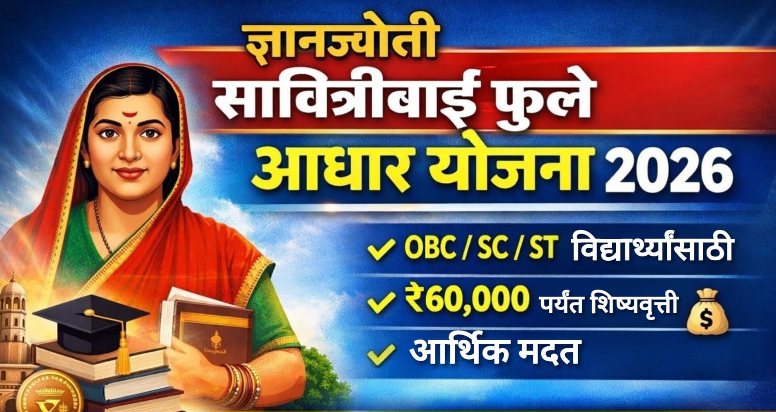 ज्ञानज्योती सावित्रीबाई फुले आधार योजना 2026 — एक सरकारी शिष्यवृत्ती / आर्थिक सहाय्यता योजना (महाराष्ट्र सरकार)