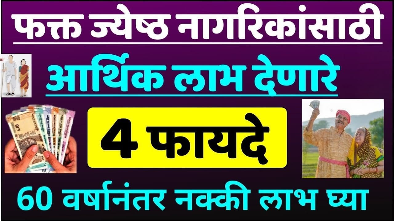 60 वर्षावरील ज्येष्ठ नागरिकांसाठी चार असे फायदे जाणून घेणार आहोत जे त्यांना त्यांच्या वयाच्या 60 वर्षानंतर घेता येणार आहेत आणि या फायद्यांमुळे त्यांना त्यांचे पुढील आयुष्य जगण्यासाठी कुठल्याही प्रकारची आर्थिक अडचण ही येणार नाहीये कारण की आज आपण जे काही चार फायदे बघणार आहे यामुळे ज्येष्ठ नागरिकांना नक्कीच आर्थिक फायदा होणार आहे तर असे कोणते चार फायदे आहेत जे ज्येष्ठ नागरिकांना वयाच्या 60 वर्षानंतर घेता येणार आहेत आणि यामुळे त्यांची आर्थिक अडचण सुद्धा दूर होणार आहे तर याविषयी आज आपण जाणून घेणार आहोत.