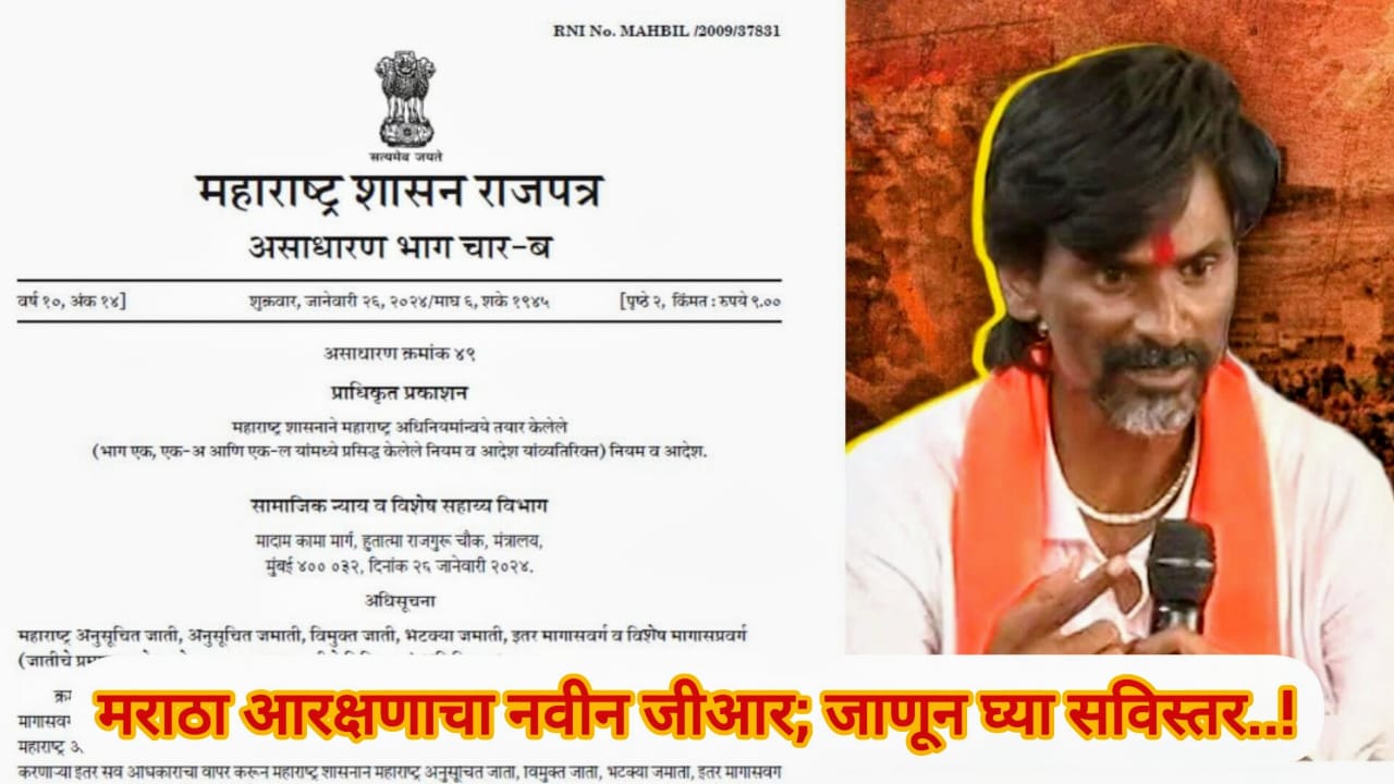 महाराष्ट्राचे राज्यपाल आणि यांच्या आदेशाच्यानुसार हा सगळा जीआर हा सगळा शासन निर्णयात काढण्यात आलेला आहे. हैदराबाद गॅजेटियर मधल्या नोंदी विचारात घेऊन मराठा समाजाच्या पात्र व्यक्तींना कुणबी मराठा कुणबी किंवा कुणबी मराठा या जातीच प्रमाणपत्र देण्याच्या संदर्भातली ही मनोज जरांगे पाटील यांची एक महत्त्वाची मागणी होती नऊ त्यांच्या वेगवेगळ्या मागण्या होत्या त्यापैकी ही एक महत्त्वाची मागणी होती.